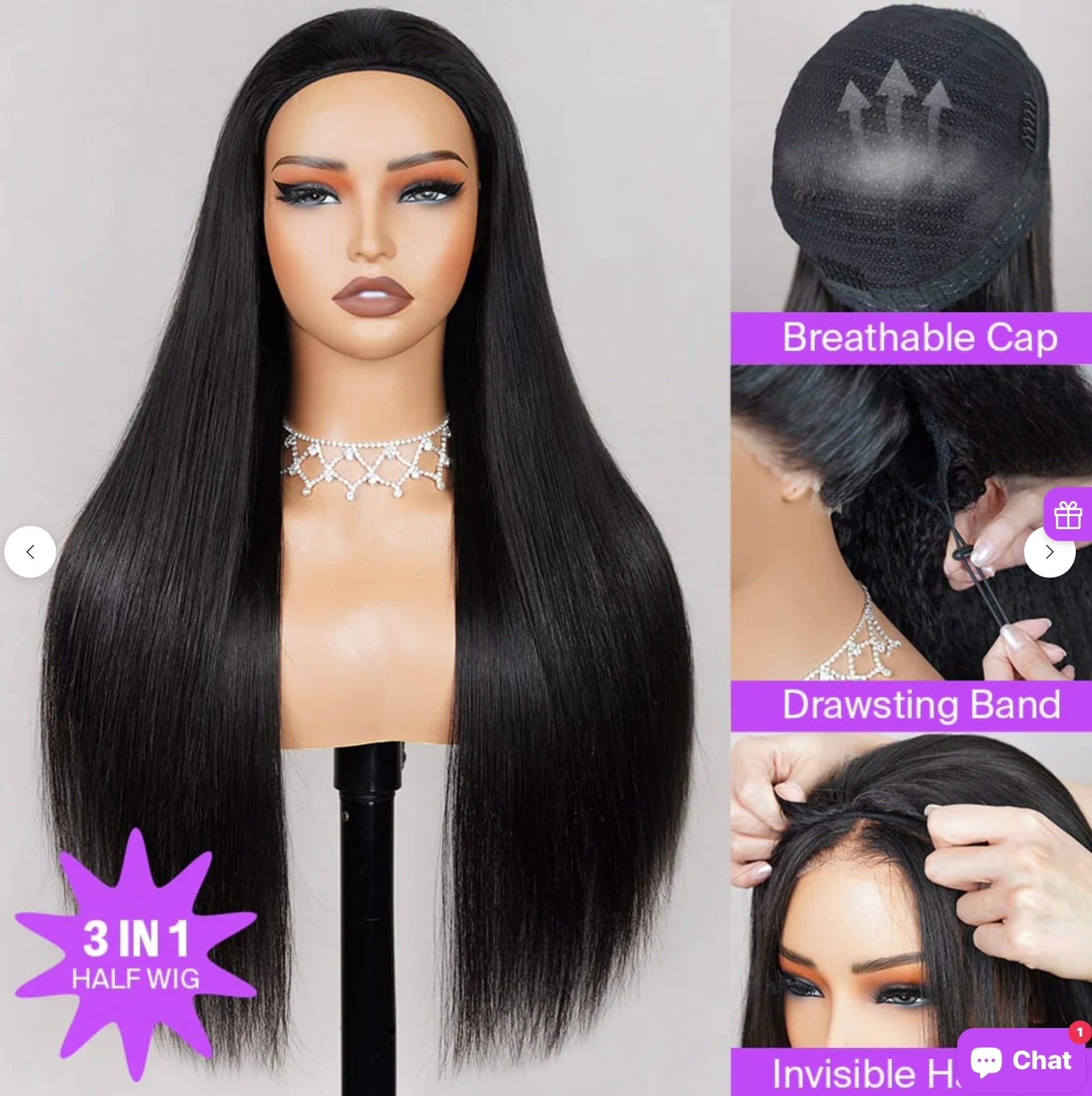 A flip-over wig is a versatile, beginner-friendly wig designed for effortless styling without a defined part. Unlike traditional wigs, it allows you to “flip” the hair in different directions for a natural, voluminous look. This glueless unit blends seamlessly with your natural hair and can be styled in multiple ways—whether as a headband wig, half wig, or even a drawstring ponytail. Perfect for those who love flexibility and easy, everyday glam!