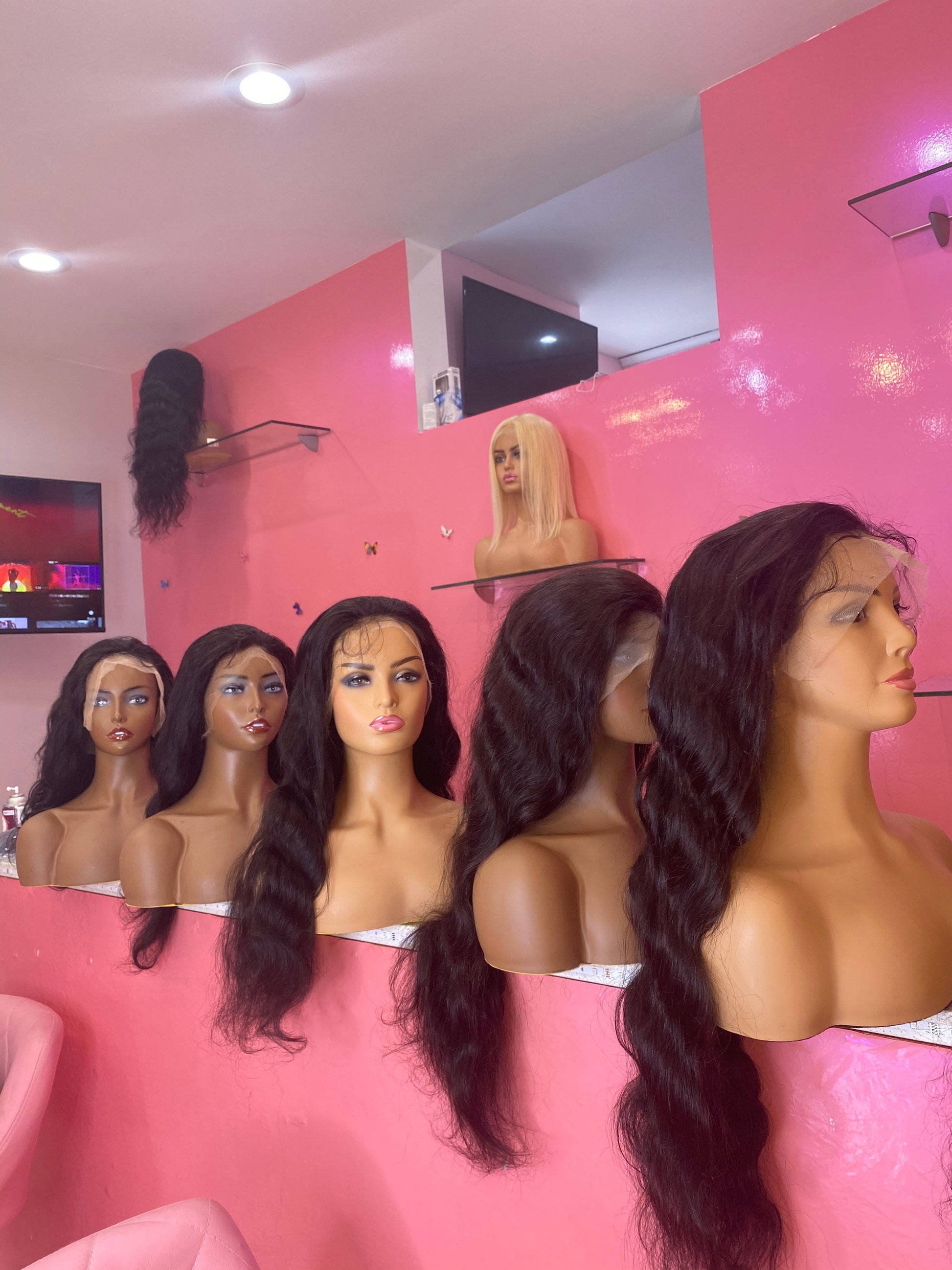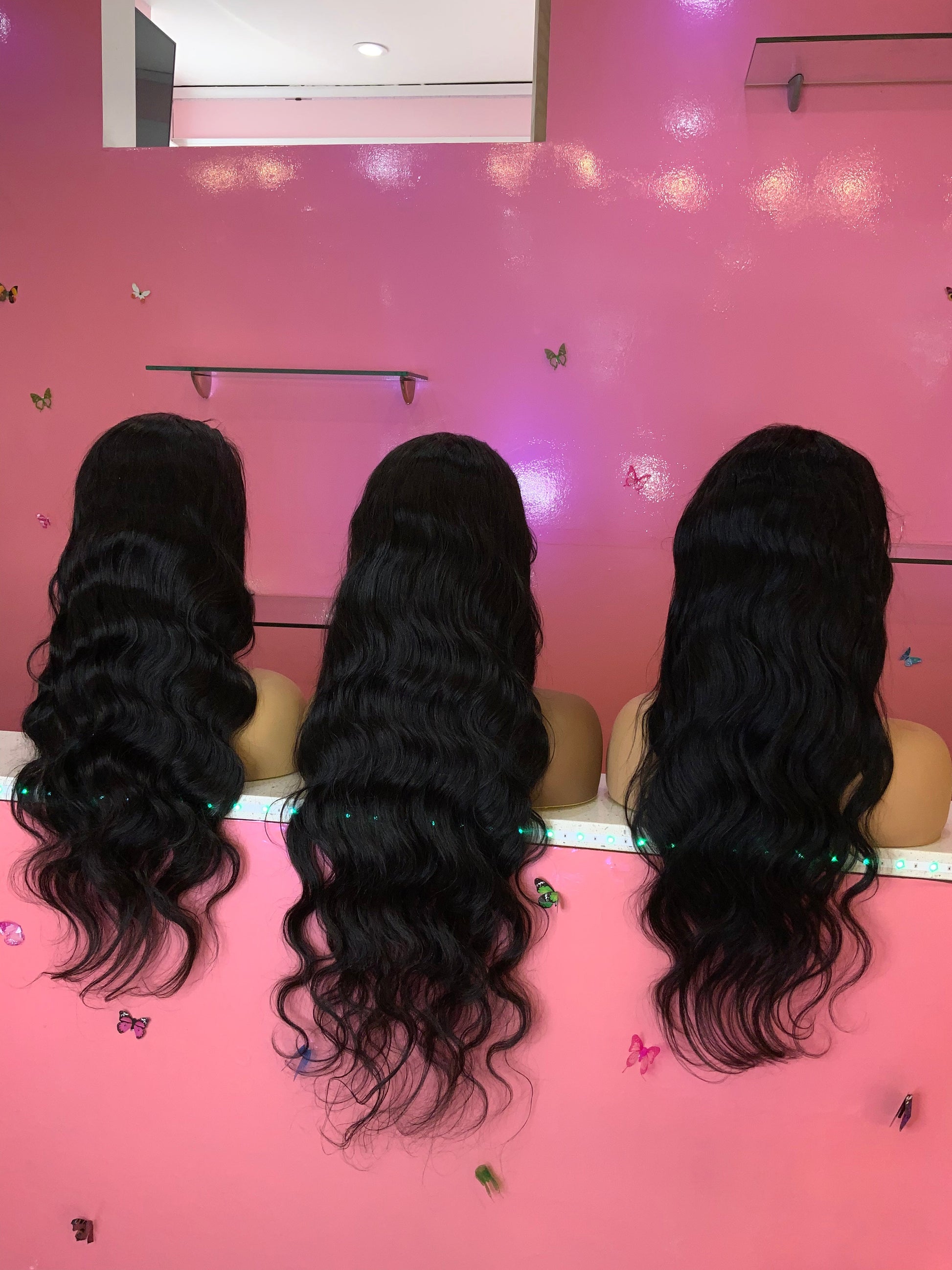 Our Frontal wigs are made on a stretchy wig cap with our 100% Top Quality Virgin Brazilian hair bundles and our undetectable pre-plucked HD lace Frontal to give your installment a more natural look! They're convenient for On-The-Go hairstyles and easy to install for yourself and/or your stylist. This wig can be worn glue-less or glued down.